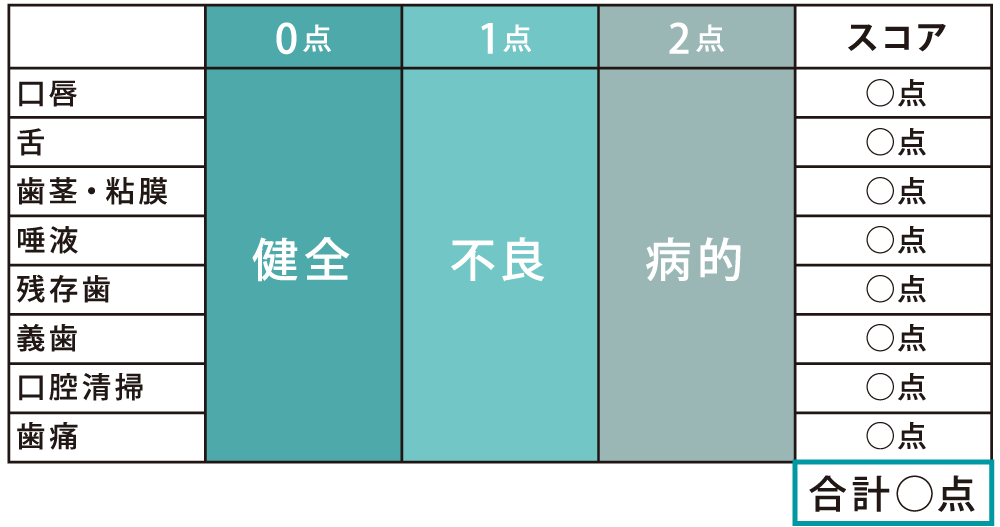 あくまでOHAT評価に基づき、各ご利用者さまのお口の状態に応じて、今後も継続的な支援が必要かどうかが決まります。詳細につきましては個別ご相談にて、ご説明させて頂きます。