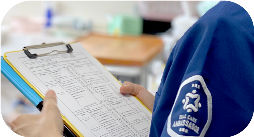 私たちは、介護現場の患者様、ご家族様、介護職・専門職の方と介護の困りごとに共に悩み、共に解決することを何よりも大切にしています。特に力をいれているのが、食そして命を守ることです。今までの取組を通して、どなたに対しても同じ手順で簡単にできる「介護現場のための口腔ケア」を作り上げることができました。その結果として、多くの人の命が守られています。この輪を拡げていくために、お力をお貸し頂けたらありがたいです。ぜひ、一緒に、介護のチカラで命を守っていきましょう。